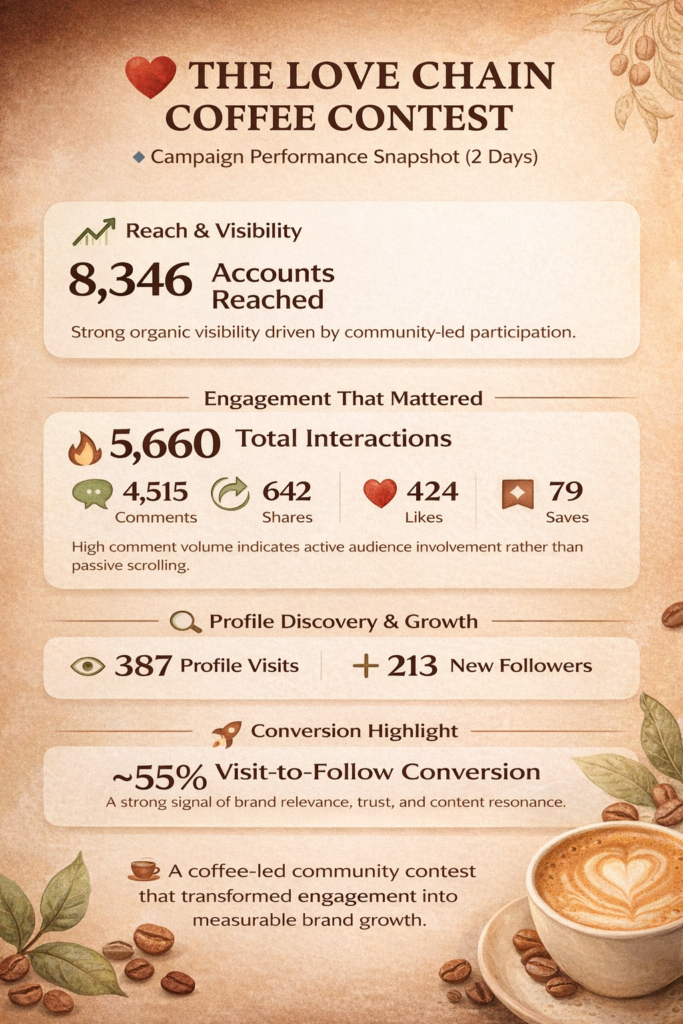 By removing complexity and focusing on emotional expression, Curly Brew transformed a routine Instagram contest into a shared cultural moment. The campaign didn’t rely on creators, aggressive incentives, or paid amplification. Instead, it leveraged something far more powerful — belonging.
